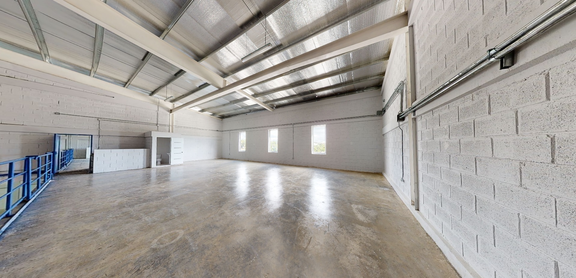 Proyecto de 5 Naves Industriales desde 550 hasta 3,000 m2, a doble altura, (12 metros de altura), pisos de alta resistencia en hormigón, 2 rampas para contenedores y montacargas, mezzanine, pre-instalación de oficina, baño y parqueos, control de entrada y salida de vehículos, ruta de transporte, fachada empresarial.